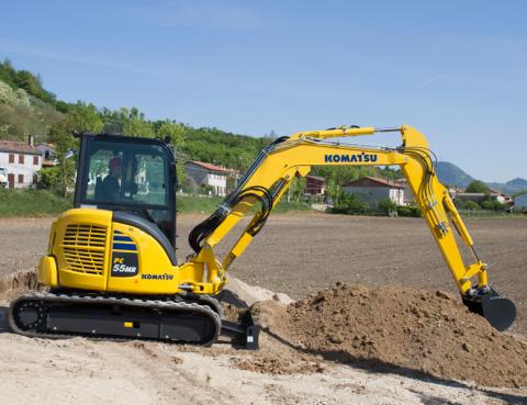 Location de mini pelle en Belgique ? Loiselet vous propose la location par jour, par semaine ou par mois. Veuillez trouver nos tarif de location de Komatsu PC55 (5 tonnes).