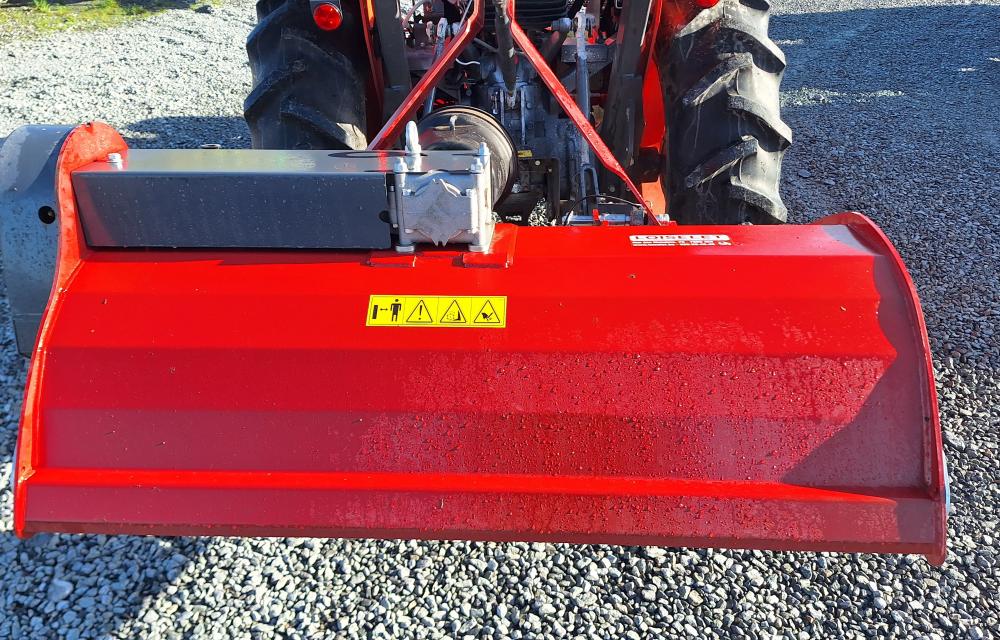 Broyeur polyvalent pour débroussaillage léger, herbe ou scarification. Attelage 3 points fixe avec déport latéral de 0 - 5 - 10 cm par position des bras inférieurs d'attelage.