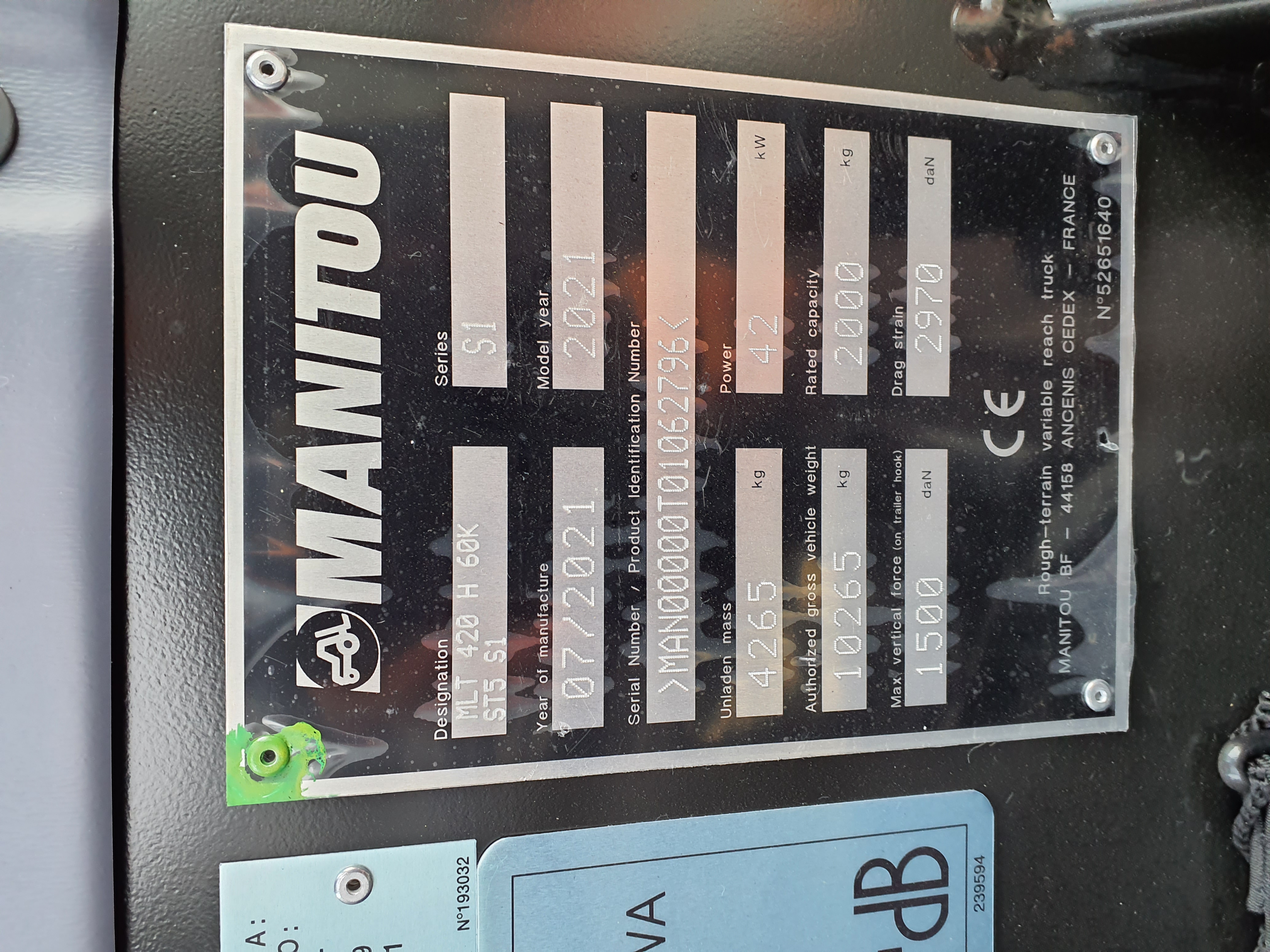 Marque: ManitouType Occasion: Chariots Manitou télescopiquesMANITOU MLT420Model: MLT 420H 60KAnnée: 2021Heures: 311Prix: 59.500,00 € Contactez nous CaractéristiquesREF18668